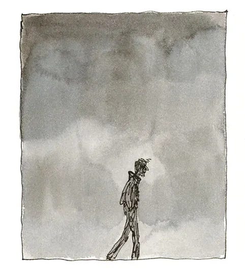 Illustrator Quentin Blake zegt dat deze tekening van Michael, hij is verdrietig maar probeert om er gelukkig uit te zien, de moeilijkste tekening is die hij ooit heeft gemaakt.